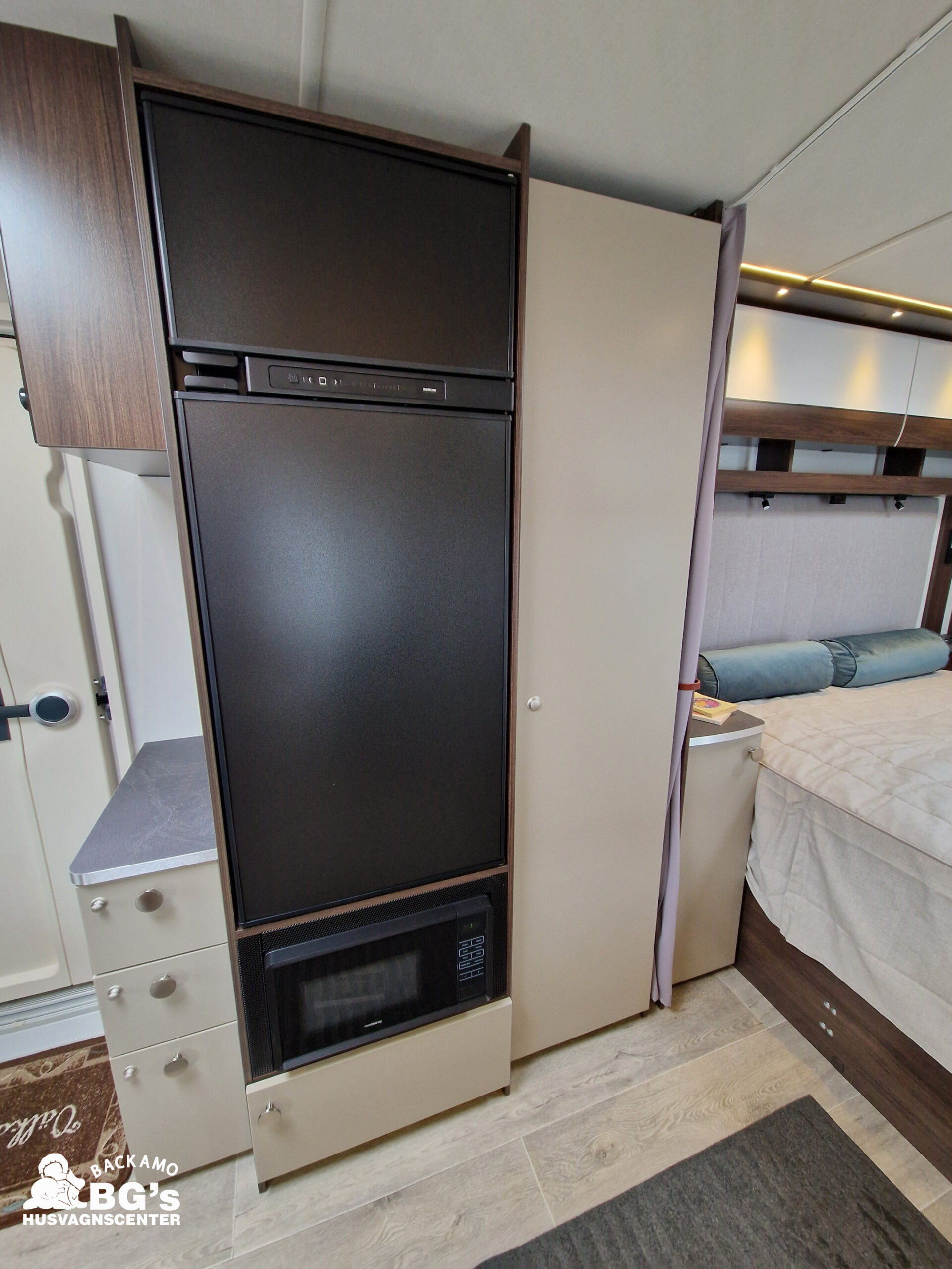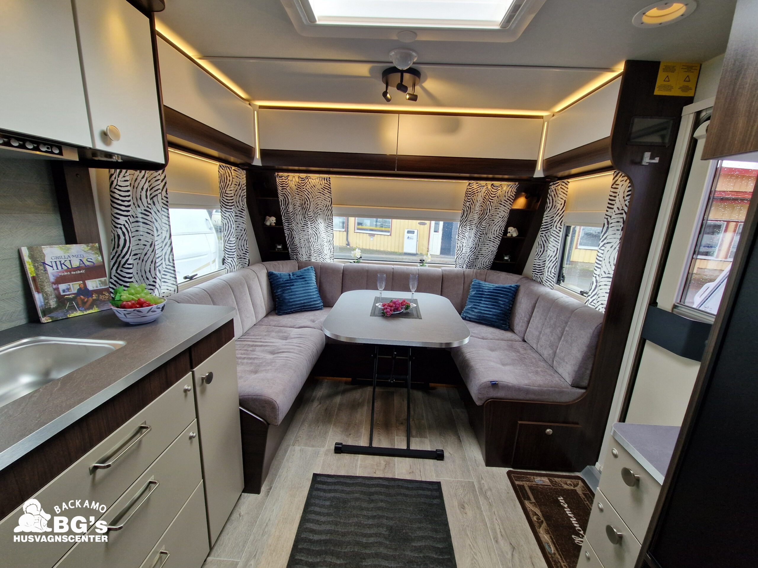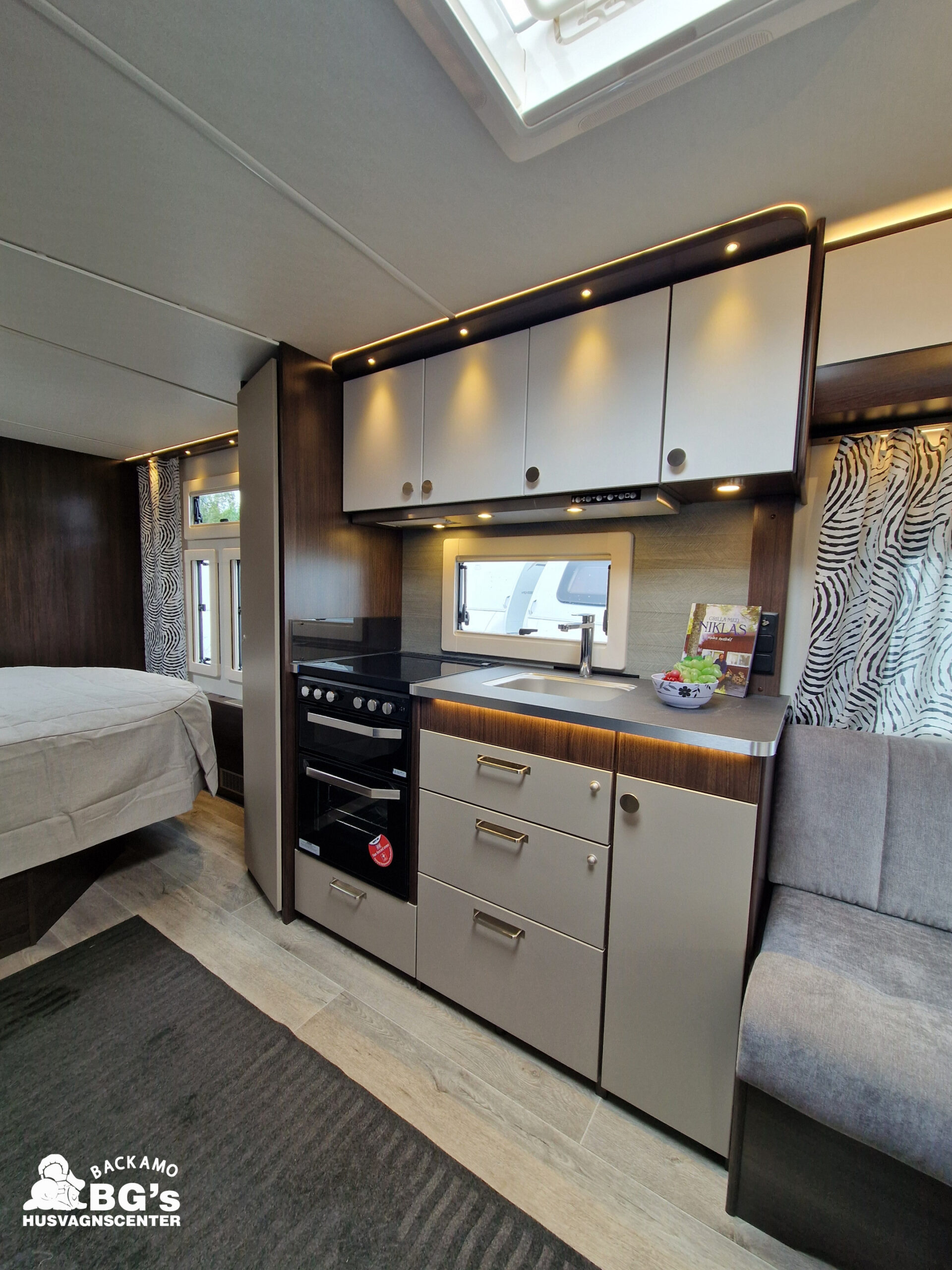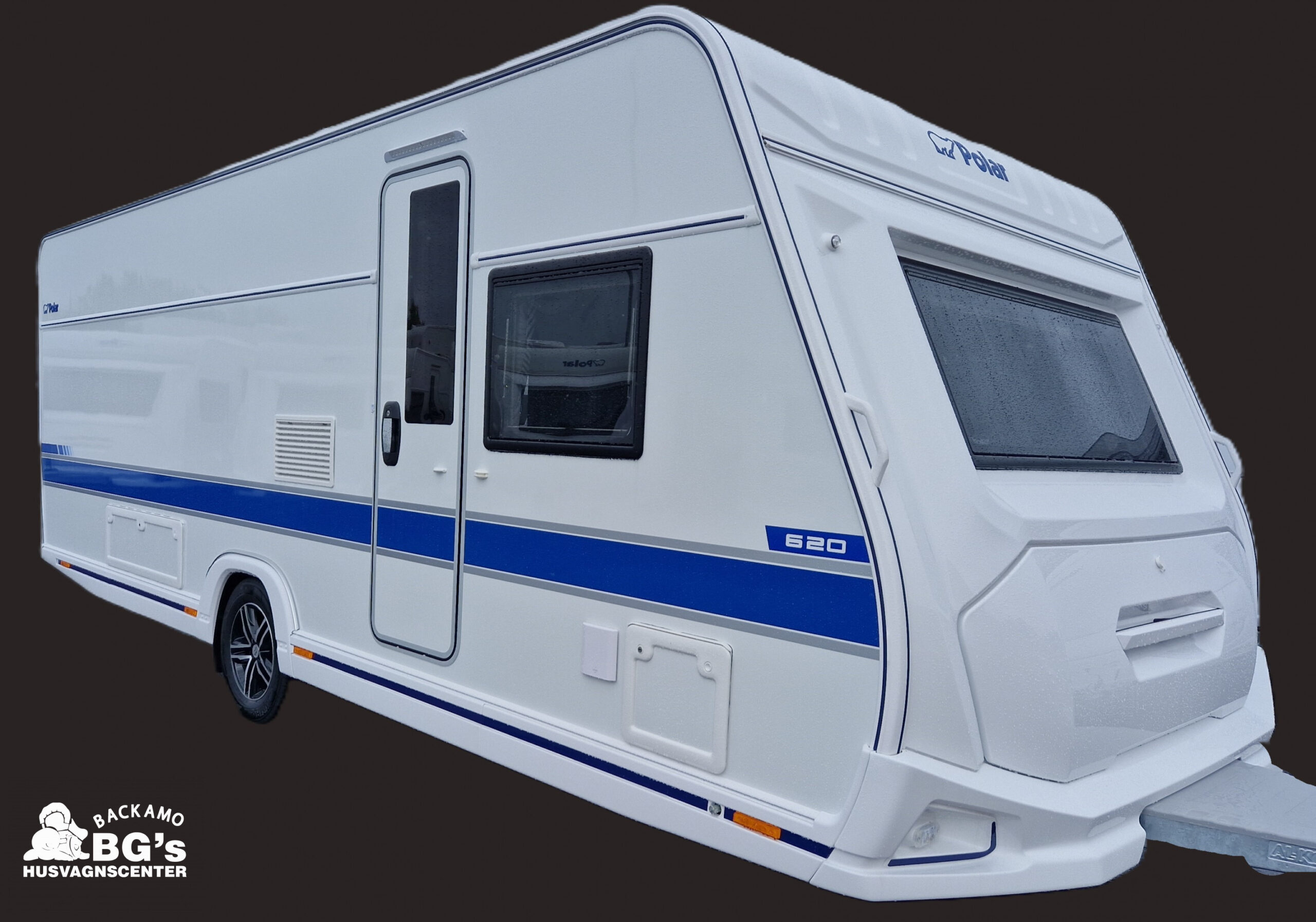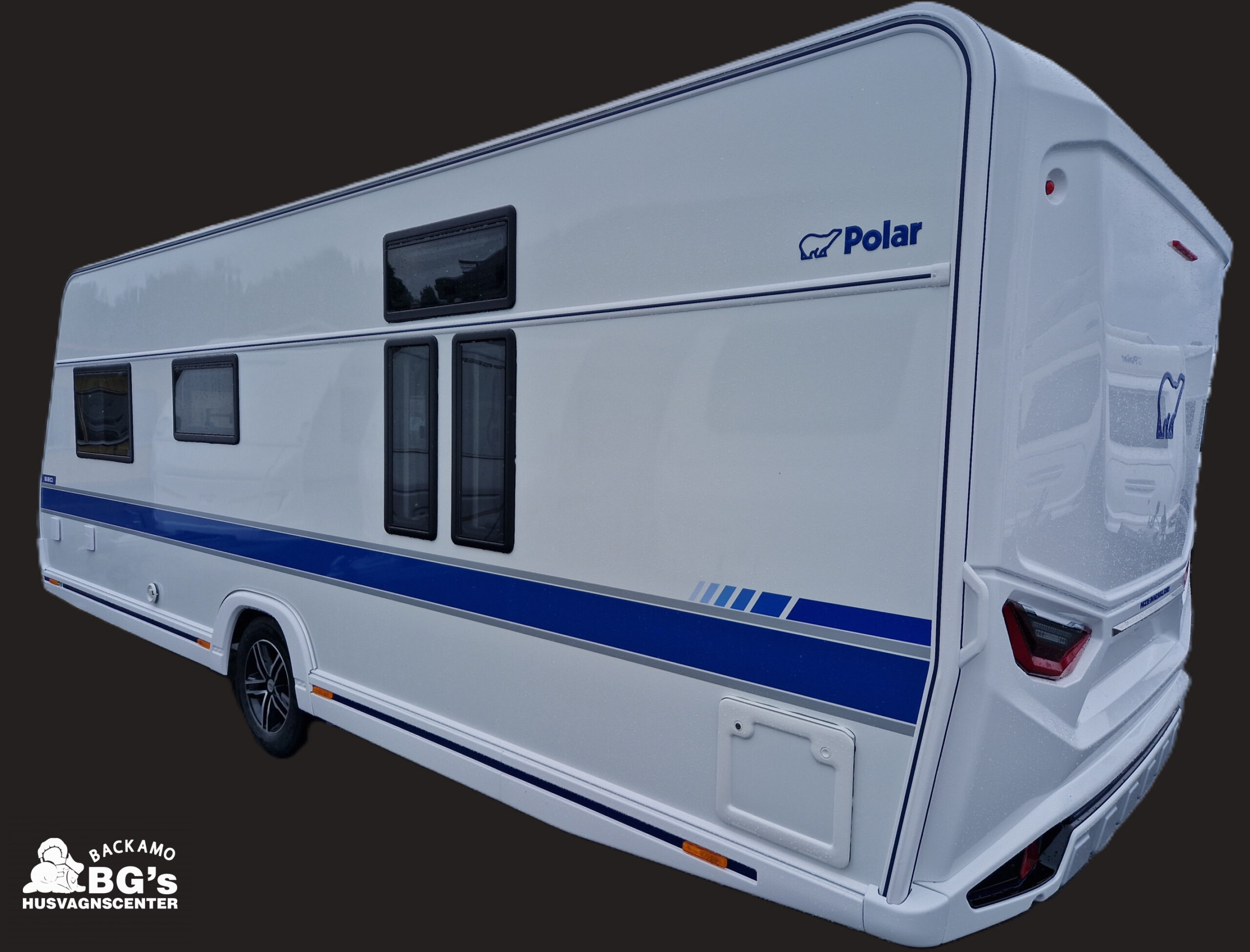 4-lågig spis med glaslock och elektrisk tändning, Gasolugn, Avfallshinkar 2 st, Besticklåda, Elektrisk köksfläkt, Indirekt belysning undersida av diskbänk, Lock till diskho, Soft Close i kökslådor, Stort pentry fönster, 3 cm tjock bäddmadrass, Draperi till våningssängar i C-vagnar, Förvaringsfickor i alla C-vagnar, Klädd kontinental sänggavel, Kudde extra 68 x 38, 2st, Lådor under våningssäng i C-vagnar, Överkast till sängar, Pocketresår madrasser, Ribbotten sängar, Taklucka 280 x 280 Micro Heki i badrum, Invändig avloppstank 40 liter med utvändig tömning, Invändig färskvatten tank 40 liter med utvändig påfyllning, Nivåmätare avloppstank, Nivåmätare färskvatten, Varmvattenberedare, Vridbar elektrisk kassettoalett, Enhetligt låssystem med en nyckel till samtliga lås, Slät blå/vitplåt , Läckagetest gasol i koffert, Marknadens tjockaste isolering vägg/tak 37 mm golv 44 mm, Sandwichkonstruktion väggar och golv, Skid/lastlucka med belysning och utdragbar botten på dörrsida, Mellantonade fönster, Optimerad ventilation med luftspalter, Slät utsida på fönster, Steglös öppning av fönster (ej gavelfönster fast), Steglös reglerbara myggnät i fönster (ej gavelfönster), Steglös reglerbara rullgardiner i fönster, Ventilerade fönsterkarmar, Batteri 75 Ah, Batteriladdare 30 A, Batteritestare, Förtältsbelysning över ytterdörr, Förtältservice inkl. 12V/230V Tv-anten in/ut, Jordfelsbrytare, LED belysning gasolkoffert, LED belysning skidlucka, Ledstripe fönster fram, Sängbelysning med USB uttag i lampsockel, Trafikbelysning LED, 2 högtalare fram, 230 V-uttag i fönsterhylla, Ergonomiska sittdynor, Integrerade USB uttag i läslamp sockel, TV-plats ink 230 V och antennuttag, Elpatron 3 kW, Inom och utomhustermometer, Panna Alde compact 3020, Uppvärmt avlopp, Vattenburen centralvärme gasol 6.3 kW och el 3.0 kW, Vattenburen golvvärme med reglerbar cirkulationspump (Polar floor heating system), 2 års funktionsgaranti, 7 års täthetsgaranti, Viktintyg inklusive utrustning följer samtliga vagnar, Alternativa totalvikter finns, POLAR 2025: Slät plåt på alla modeller, Nya Modellserier, Ny inredning, Elintag flyttat till vänster sida fram på vagnen, Blåa/vita vagnar har mer blåa detaljer, Svart/vita vagnar har mer svarta detaljer, Kom in till oss så berättar vi mer!, ord.pris: 657.600:-,