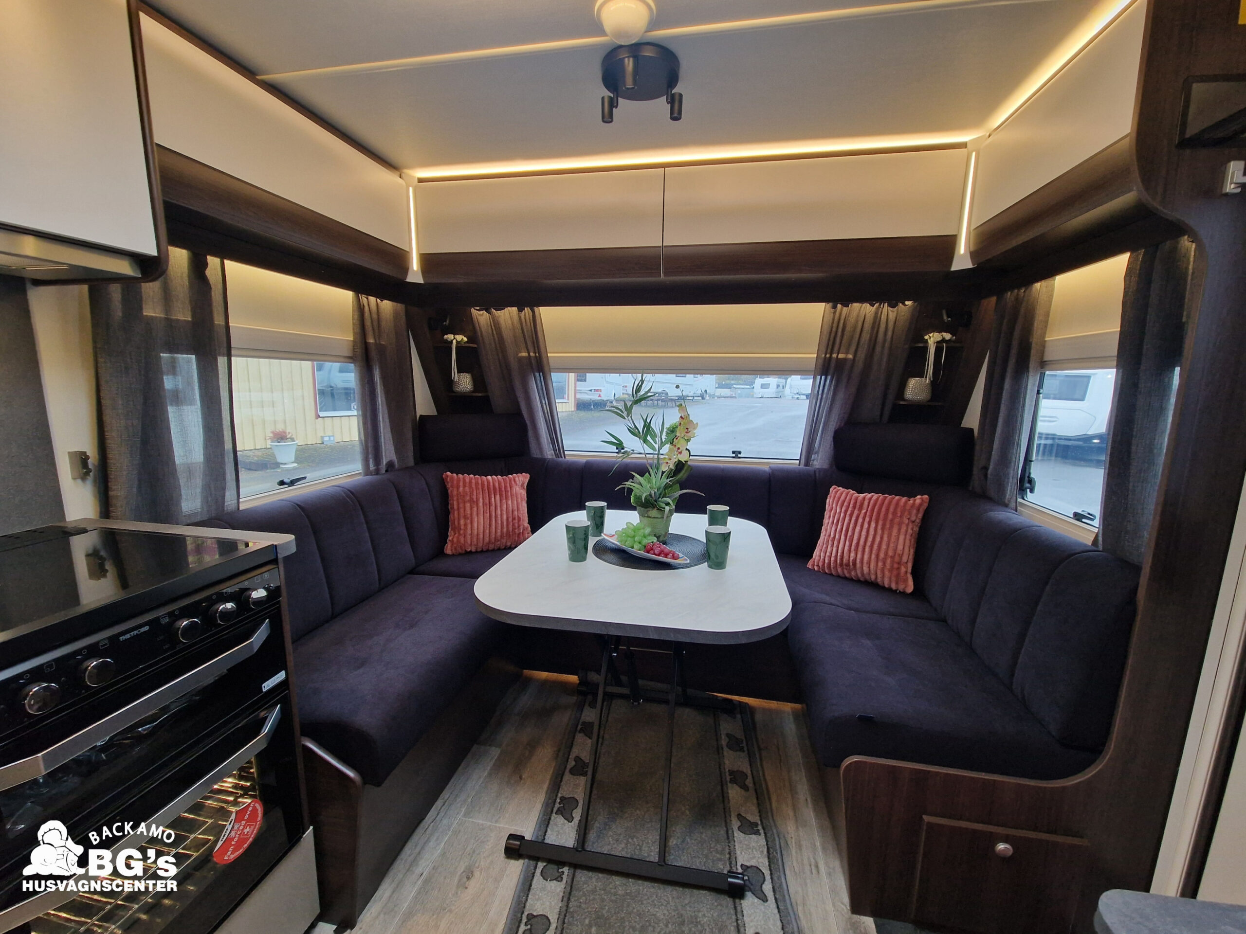 4-lågig spis med glaslock och elektrisk tändning, Gasolugn, Avfallshinkar 2 st, Besticklåda, Elektrisk köksfläkt, Indirekt belysning undersida av diskbänk, Lock till diskho, Soft Close i kökslådor, Stort pentry fönster, 3 cm tjock bäddmadrass, Klädd kontinental sänggavel, Överkast till säng, Pocketresår madrass, Ribbotten säng, Taklucka 280 x 280 Micro Heki i badrum, Invändig avloppstank 40 liter med utvändig tömning, Invändig färskvatten tank 40 liter med utvändig påfyllning, Nivåmätare avloppstank, Nivåmätare färskvatten, Varmvattenberedare, Vridbar elektrisk kassettoalett, Enhetligt låssystem med en nyckel till samtliga lås, Slät blå/vit plåt , Läckagetest gasol i koffert, Marknadens tjockaste isolering vägg/tak 37 mm golv 44 mm, Sandwichkonstruktion väggar och golv, Skid/lastlucka med belysning och utdragbar botten på dörrsida, Mellantonade fönster, Optimerad ventilation med luftspalter, Slät utsida på fönster, Steglös öppning av fönster (ej gavelfönster fast), Steglös reglerbara myggnät i fönster (ej gavelfönster), Steglös reglerbara rullgardiner i fönster, Ventilerade fönsterkarmar, Batteri 75 Ah, Batteriladdare 30 A, Batteritestare, Förtältsbelysning över ytterdörr, Förtältservice inkl. 12V/230V Tv-anten in/ut, Jordfelsbrytare, LED belysning gasolkoffert, LED belysning skidlucka, Ledstripe fönster fram, Sängbelysning med USB uttag i lampsockel, Trafikbelysning LED, 2 högtalare fram, 230 V-uttag i fönsterhylla, Ergonomiska sittdynor, Integrerade USB uttag i läslamp sockel, TV-plats ink 230 V och antennuttag, Elpatron 3 kW, Inom och utomhustermometer, Panna Alde compact 3030, Uppvärmt avlopp, Vattenburen centralvärme gasol 6.3 kW och el 3.0 kW, Vattenburen golvvärme med reglerbar cirkulationspump (Polar floor heating system), 2 års funktionsgaranti, 7 års täthetsgaranti, Viktintyg inklusive utrustning följer samtliga vagnar, Alternativa totalvikter finns,