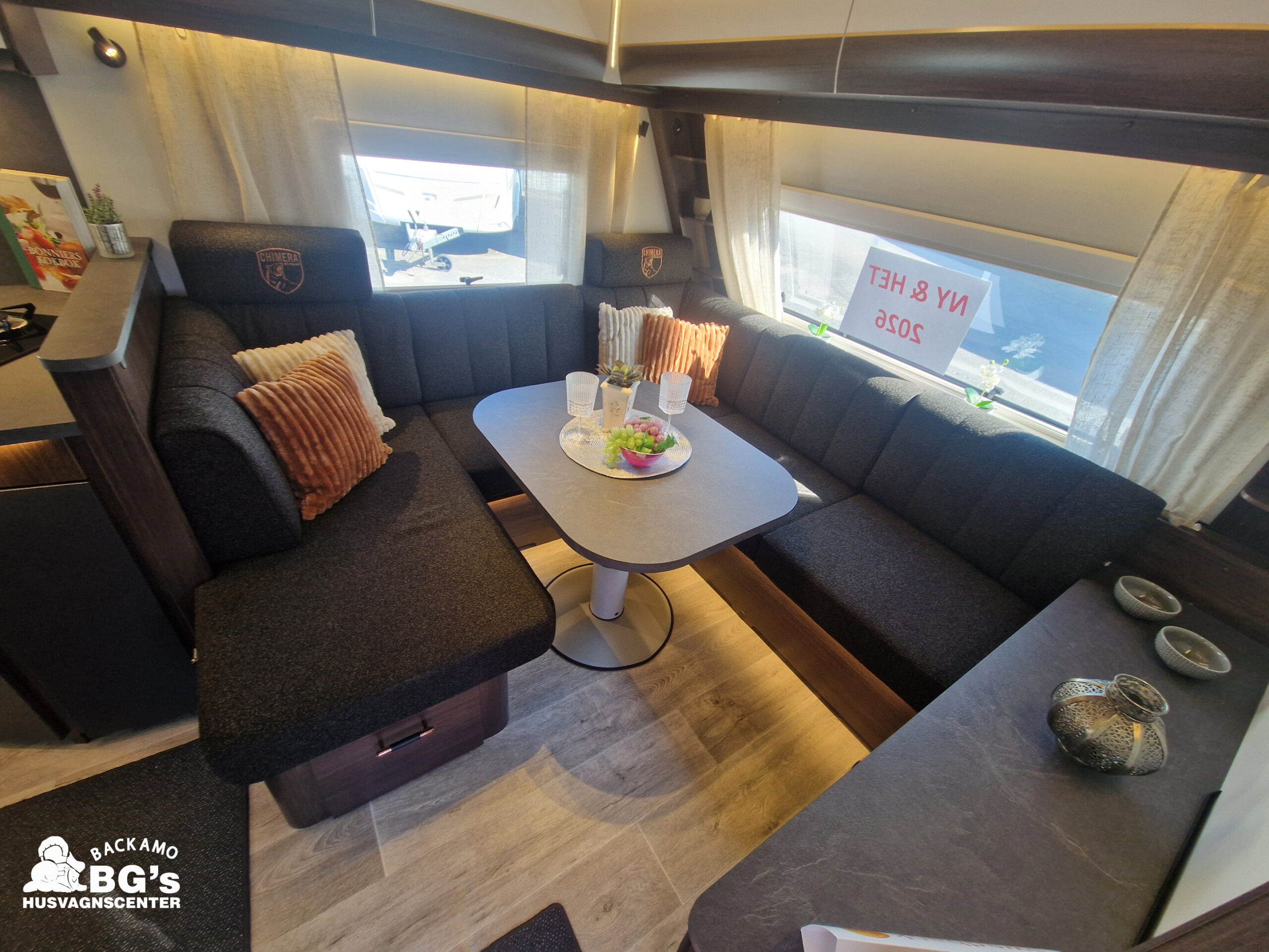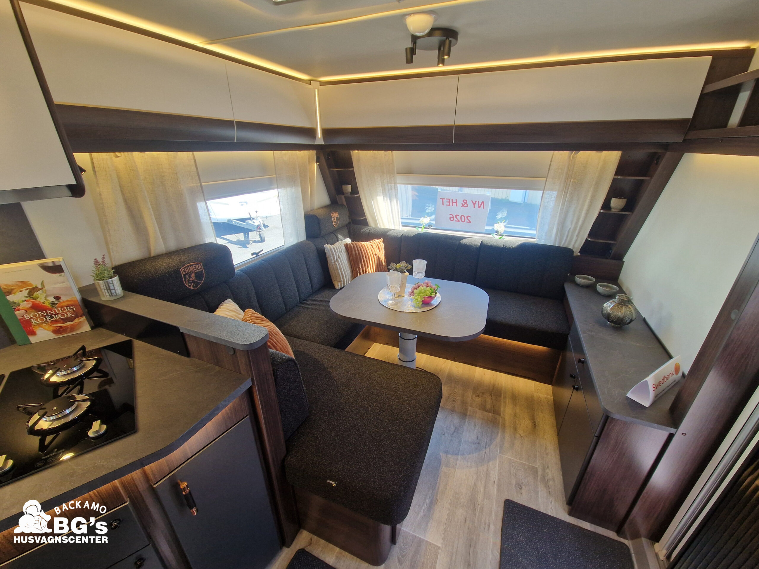Dubbla kompressor kylar ink 100 AH AGM Batteri och batteribooster, Induktionshäll och gasolspis (2+2), Kökskran i koppar, Mikro och ugn 230V i pelare, Ledbelysning sittgrupp, Nackkuddar 2 st, USB-uttag i läslampor, Automatiskt uppvärmt avlopp 230 V, Bredare ytterdörr, Förtältsservice, Gasolomkopplare Alde Duocontrol med krocksensor, Gasoluttag på koffertvägg, Läckagetest gasol, Lastlucka höger fram, LED-belysning lastlucka & gasolkoffert, Mörkt kjolpaket med koppar rand, Slätplåt, Stänkskydd vid hjul, Belysning i garderob, Klädd sänggavel, Pölkuddar 2 st, Sängbelysning med USB-uttag, Ställbara huvudändar, Super de Luxe bäddmadrass (6 cm), Fönster i badrum, Handdukstork, Taklucka i tvättrum, Torkstång i duschkabin, Vattentank 60 L, Avloppstank, Batteri 100 Ah AGM, Batteriladdare, Belastningsvakt, Centraldammsugare, Extra cirkulationspump 12 V ställbar, Jordfelsbrytare, Ledstripe i fönster Luftkonditionering ACC, Midi heki taklucka 500×700 fram, Möjligt att reglera golvvärme/ element, Myggnätsdörr, Nivåmätare avloppstank & färskvatten, Panna Alde 3030 Compact, Polar Connect, Skotork i skolåda, Subwoofer, Taklucka Mini Heki, Tertek digital TV & internet antenn 360° inkl stång, Ventilationsluckor, 2 års totalgaranti, 7 års täthetsgaranti, Polars mest fullmatade husvagn, Lagerfordon för snabb leverans!, Arkiv-bilder,