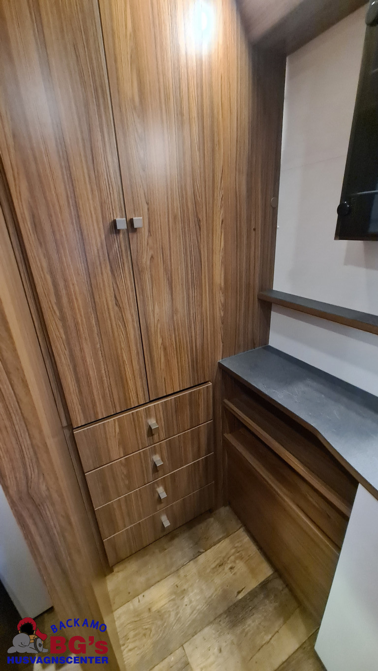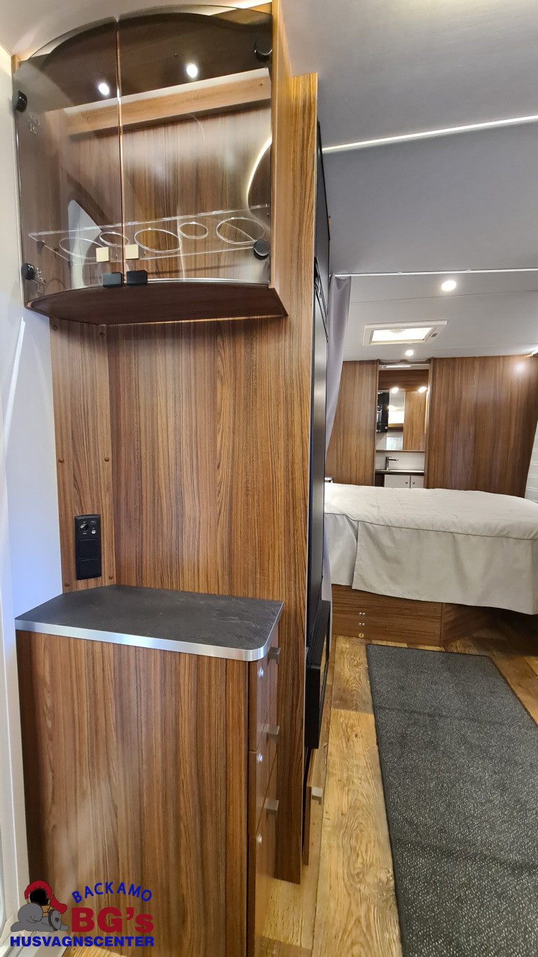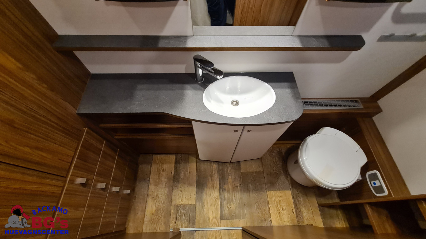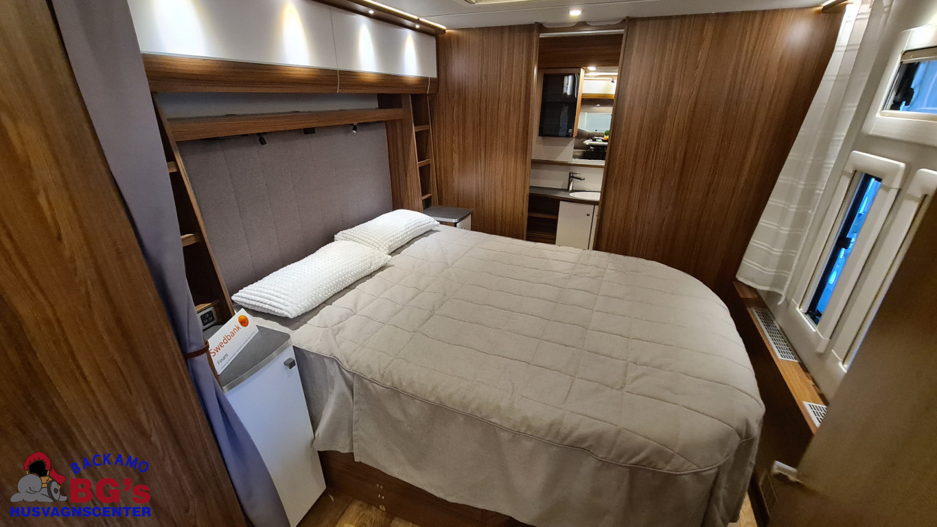 -lågig spis med glaslock och elektrisk tändning, Avfallshinkar 2 st, Besticklåda, Elektrisk köksfläkt, Indirekt belysning undersida av diskbänk, Lock till diskho, Soft Close i kökslådor, Stort pentry fönster, 3 cm tjock bäddmadrass, Draperi till våningssängar i C-vagnar, Förvaringsfickor i alla C-vagnar, Klädd kontinental sänggavel, Kudde extra 68 x 38, 2st, Lådor under våningssäng i C-vagnar, Överkast till sängar, Pocketresår madrasser, Ribbotten sängar, Taklucka 280 x 280 Micro Heki i badrum, Invändig avloppstank 40 liter med utvändig tömning, Invändig färskvatten tank 40 liter med utvändig påfyllning, Nivåmätare avloppstank, Nivåmätare färskvatten, Varmvattenberedare, Vridbar elektrisk kassettoalett, Enhetligt låssystem med en nyckel till samtliga lås, Kulhamrad blå/vitplåt , Läckagetest gasol i koffert, Marknadens tjockaste isolering vägg/tak 37 mm golv 44 mm, Sandwichkonstruktion väggar och golv, Skid/lastlucka med belysning och utdragbar botten på dörrsida, Mellantonade fönster, Optimerad ventilation med luftspalter, Slät utsida på fönster, Steglös öppning av fönster (ej gavelfönster fast), Steglös reglerbara myggnät i fönster (ej gavelfönster), Steglös reglerbara rullgardiner i fönster, Ventilerade fönsterkarmar, Batteri 75 Ah, Batteriladdare 30 A, Batteritestare, Förtältsbelysning över ytterdörr, Förtältservice inkl. 12V/230V Tv-anten in/ut, Jordfelsbrytare, LED belysning gasolkoffert, LED belysning skidlucka, Ledstripe fönster fram, Sängbelysning med USB uttag i lampsockel, Trafikbelysning LED, 2 högtalare fram, 230 V-uttag i fönsterhylla, Ergonomiska sittdynor, Integrerade USB uttag i läslamp sockel, TV-plats ink 230 V och antennuttag, Elpatron 3 kW, Inom och utomhustermometer, Panna Alde compact 3020, Uppvärmt avlopp, Vattenburen centralvärme gasol 6.3 kW och el 3.0 kW, Vattenburen golvvärme med reglerbar cirkulationspump (Polar floor heating system), 2 års funktionsgaranti, 7 års täthetsgaranti, Viktintyg inklusive utrustning följer samtliga vagnar, Alternativa totalvikter finns, ord.pris: 745.550:-,
