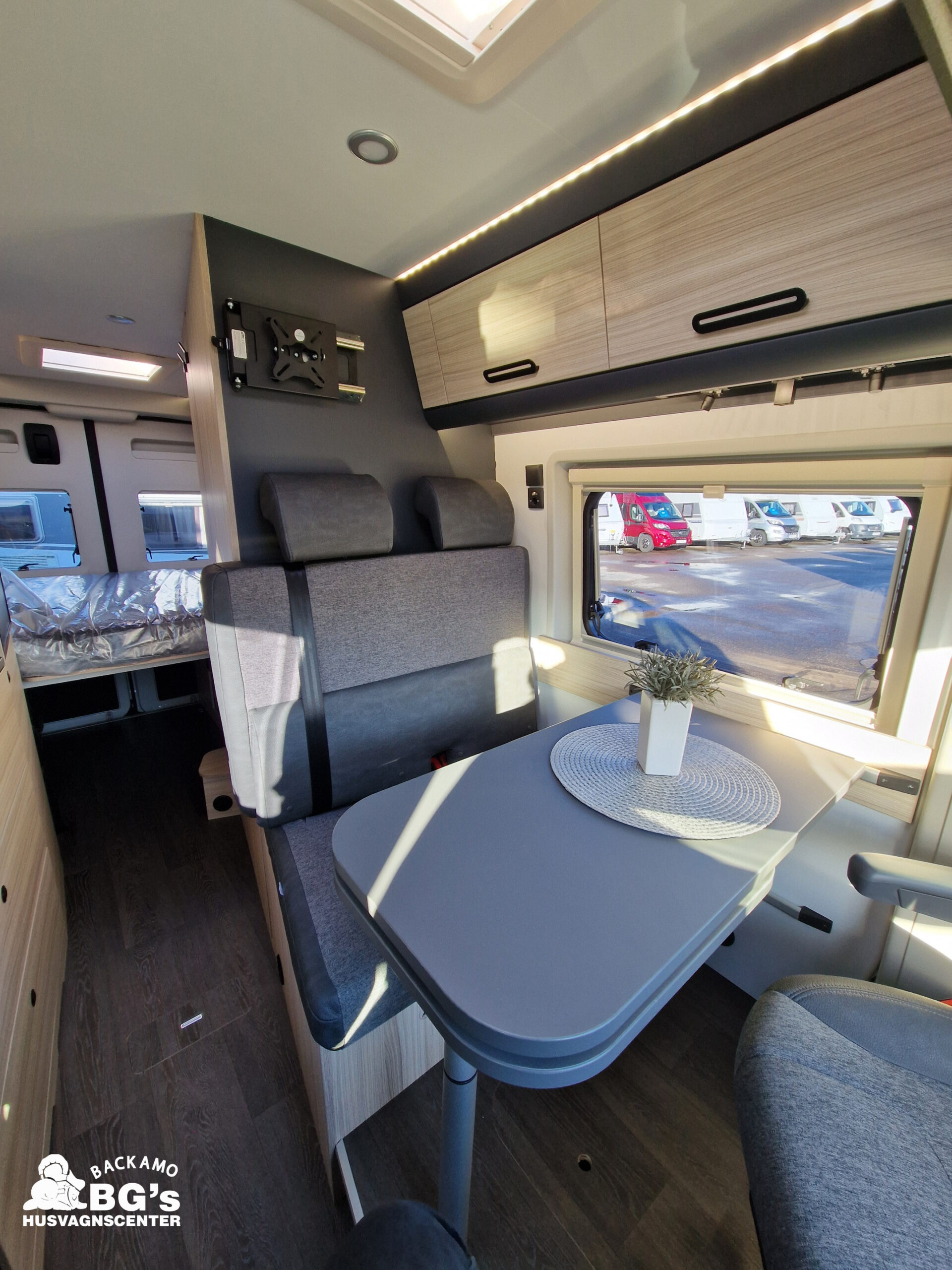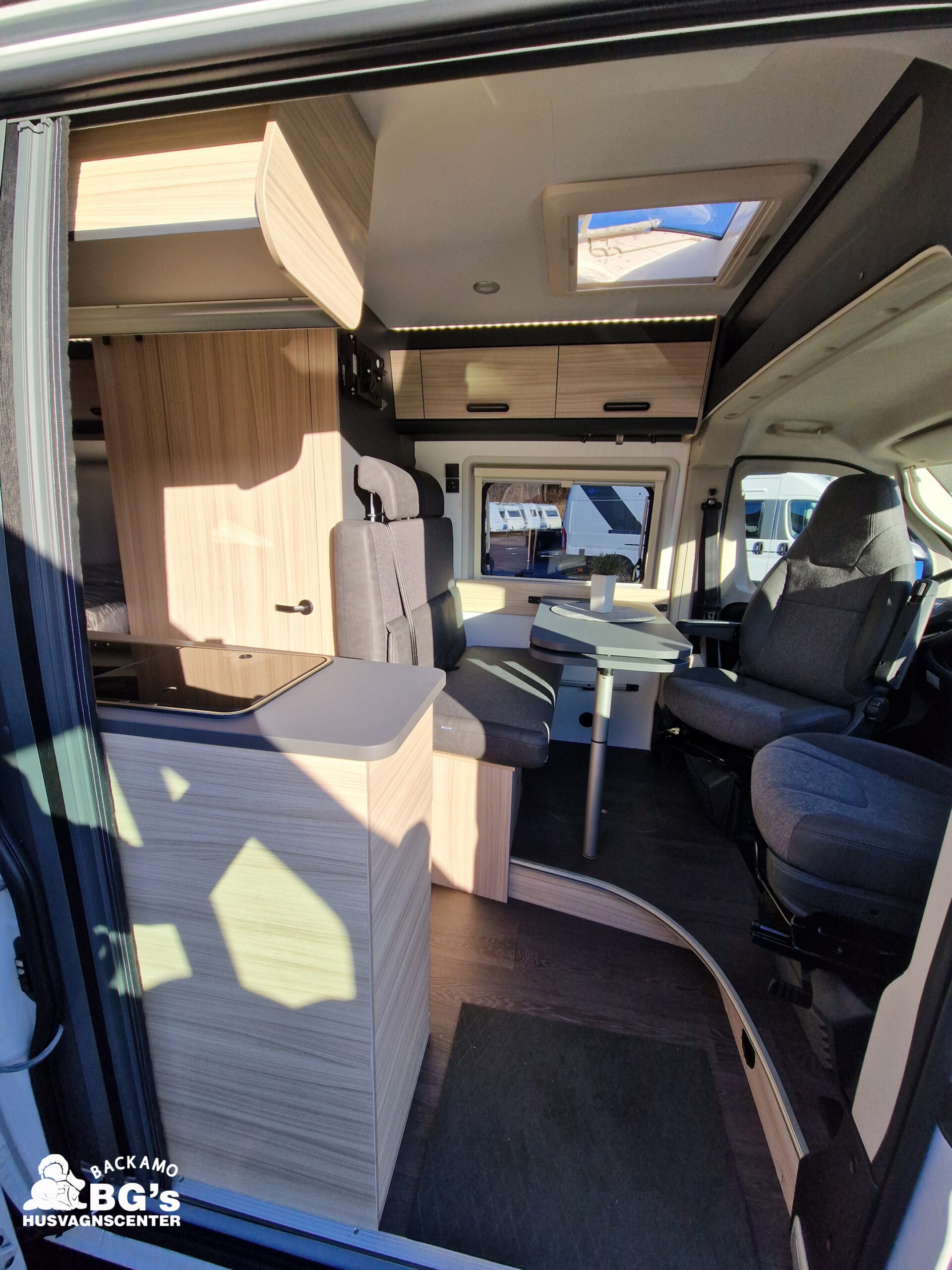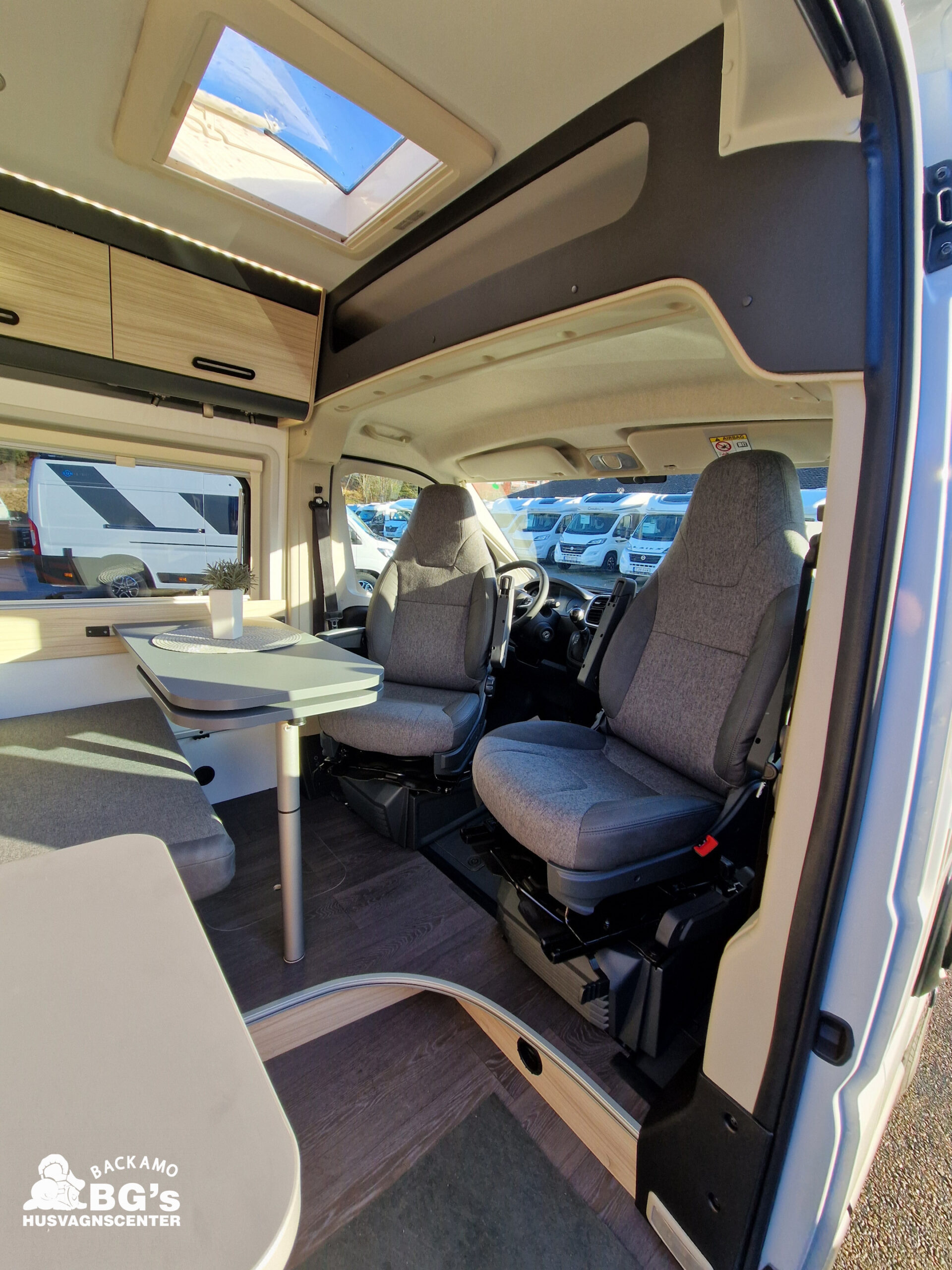 Bränsletank 60 l FIAT, Traction+, Justerbara och uppvärmda ytterbackspeglar, Backsensorer , Kompressorkylskåp 84 L, Färskvattentank med utvändig påfyllning (L) 100, Spillvattentank, isolerad och försedd med justerbar uppvärmning 70L, Elektrisk tömning av spillvattentank, Dieselvärme Truma Combi D 6 E, ord.pris 955.600kr,
