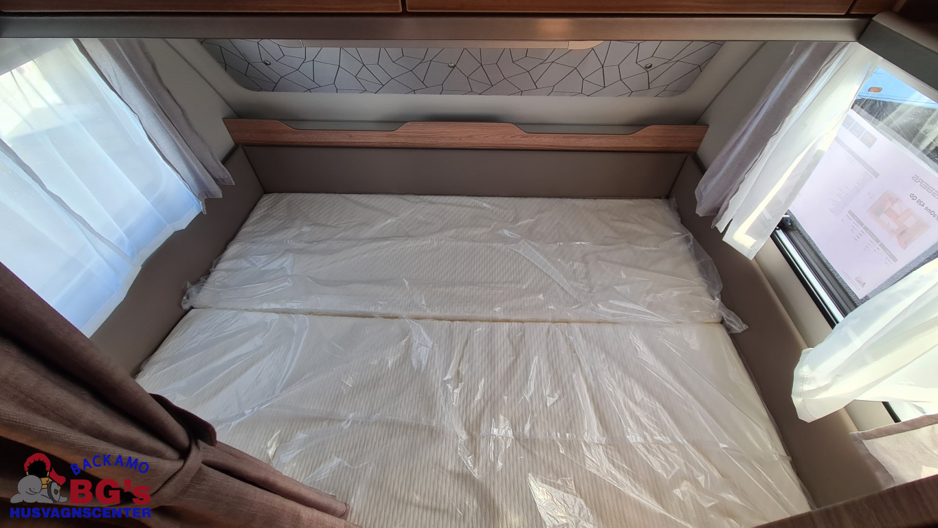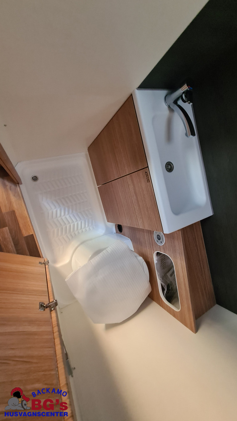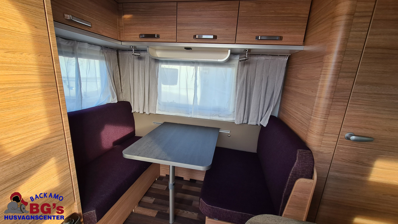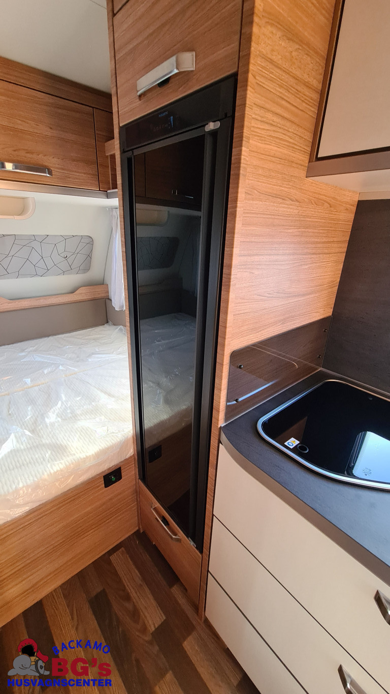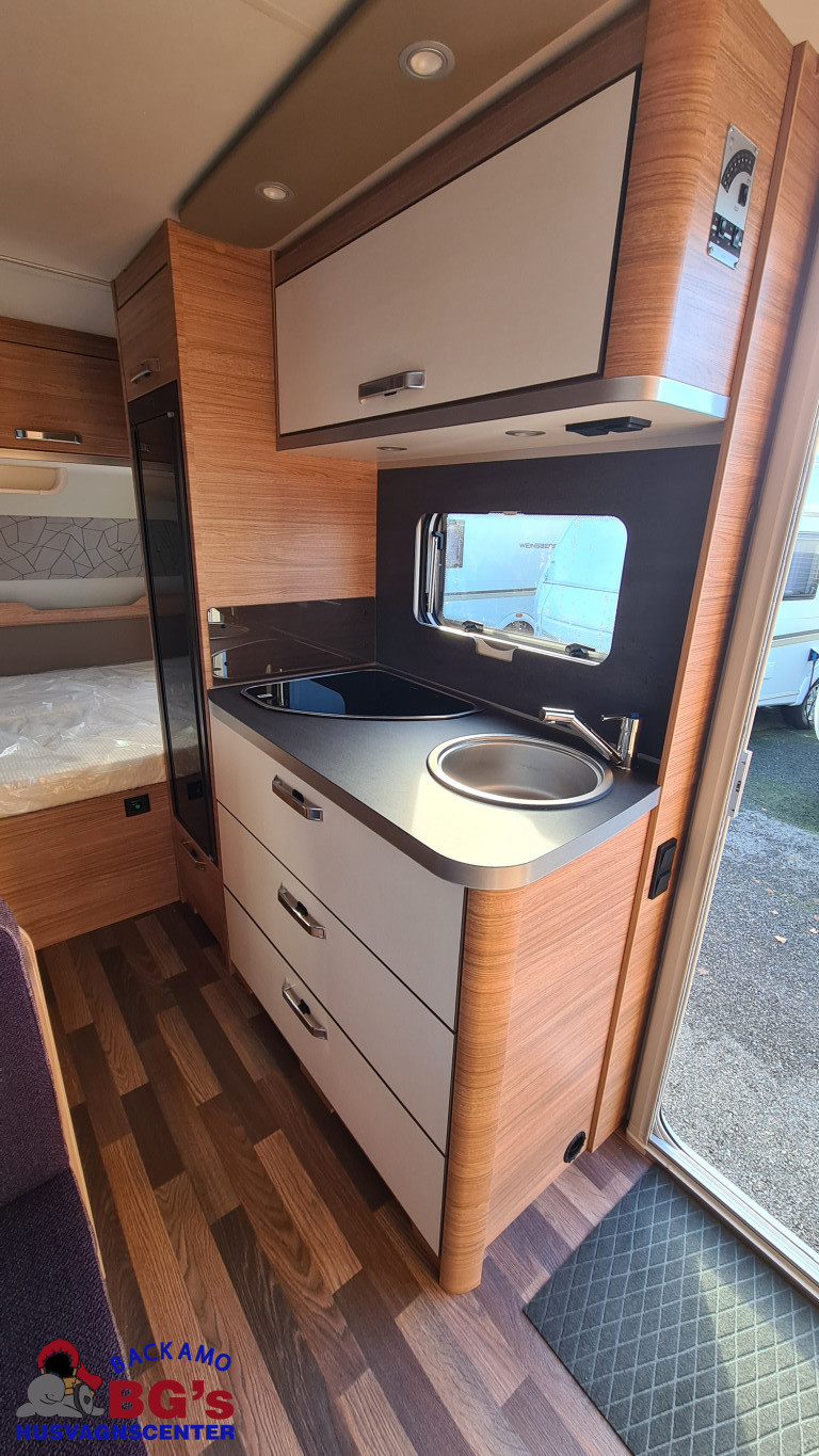 En-nyckel-system, GFK-Tak som är mindre känsligt för hagelskador, Förtältslampa med LED-ljus, 3-lågig spis med glasskydd och rostfri diskho, Kylskåp 133 liter, Färskvattentank 45 liter, Vattenfiltersystem ”bluuwater”, Automatsäkring 230 V, Jordfelsbrytare, 2 års totalgaranti, 8 års täthetsgaranti, ord.pris: 289.600:-,