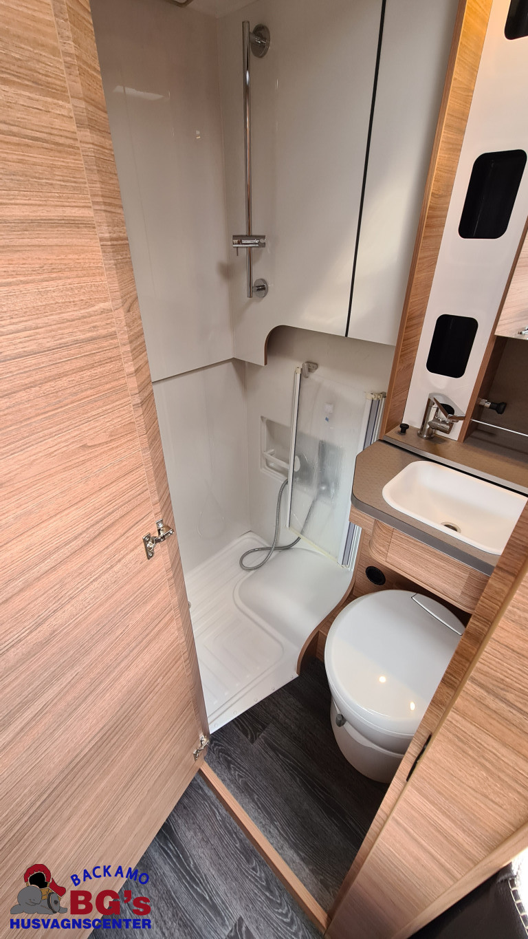 Stolsvärme förar och passagerarstol, Vattenfiltersystem ”bluuwater”, Hytt i 2 färgad design, Elektrisk trappsteg vid entredörr, Uppvärmning Truma Combi6D ( Diesel och/eller EL), m.m., ord.pris 1.108.200:-,